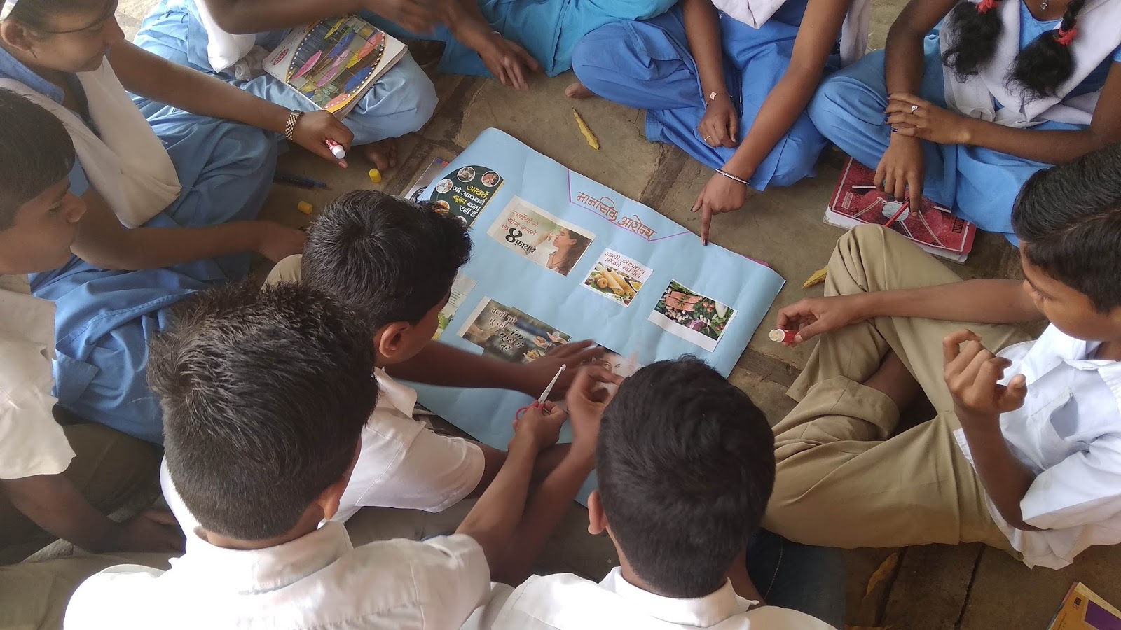 group activity करताना शाळेचे विद्यार्थी